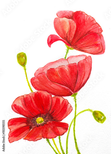 © Ghen, Naklejka premium watercolor hand painted red poppies composition