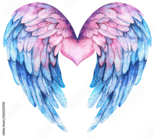 Fototapeta premium Watercolor heart with wings artistic design vibrant colors abstract concept...