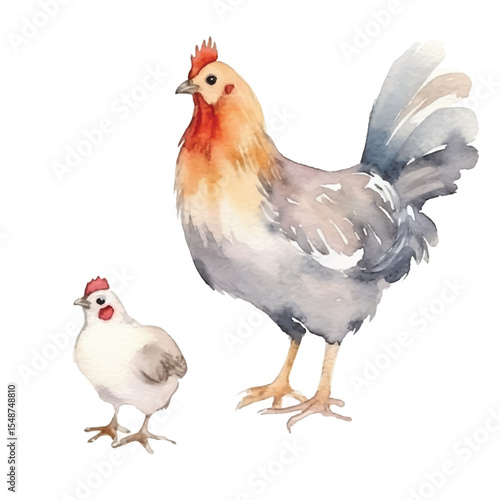 Fototapeta premium Watercolor Hen and Chick A Gentle Farm Scene