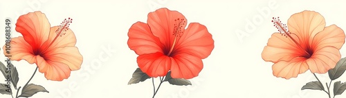 Obraz premium Watercolor Hibiscus Flowers Isolated on White Background
