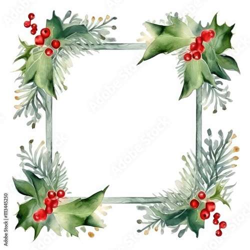 Fototapeta premium Watercolor Holly Frame with Red Berries