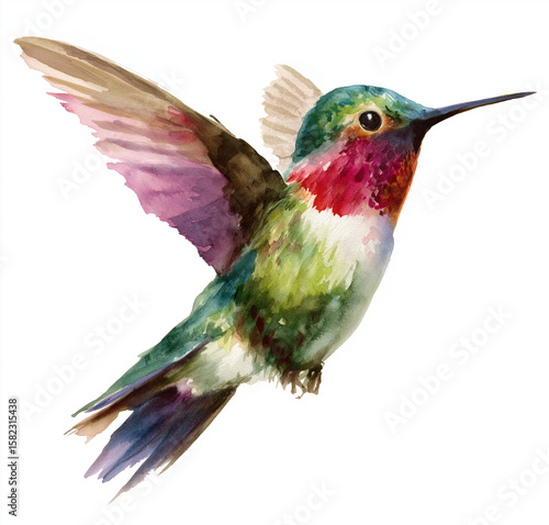 Obraz premium Watercolor hummingbird artwork, red isolated backdrop