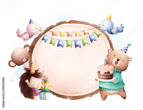 Obraz premium Watercolor illustration Birthday invitation design template