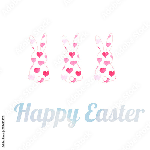 © Виктория Шабасова, Fototapeta premium Watercolor illustration happy Easter. Rabbit and Easter eggs. Lettering Happy Easter