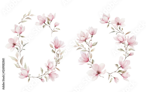 Fototapeta premium Watercolor Illustration Magnolia Wreath. Botanical illustration for invitation and social media.