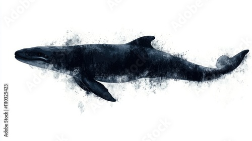 © Aziz, Obraz premium Watercolor illustration of a black whale swimming.