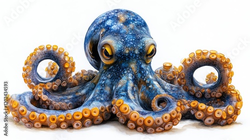 Obraz premium Watercolor illustration of a blue octopus on a white background