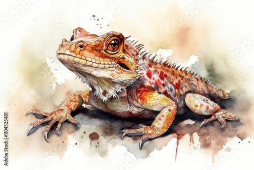 Obraz premium Watercolor illustration of a chameleon on a white background.