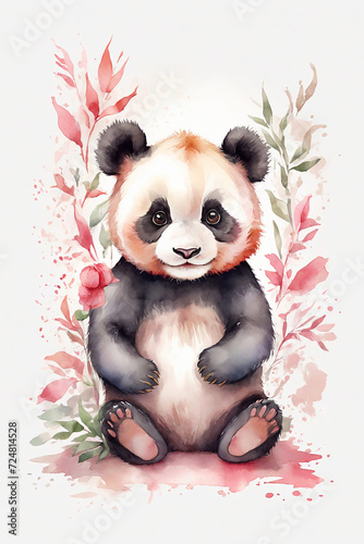 Fototapeta premium Watercolor illustration of a cute little panda white background