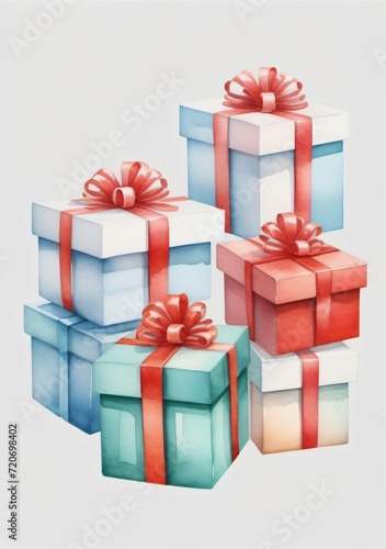 © Pixel Matrix, Fototapeta premium Watercolor Illustration Of A 3D Render Of Isolated Open Gift Boxes Isolated On White Background