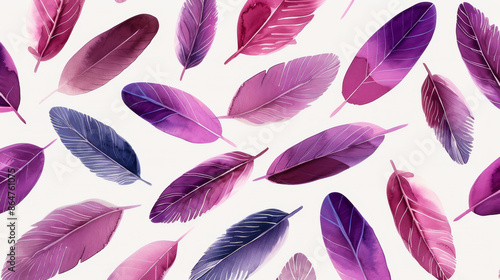 Obraz premium Watercolor illustration of a dreamlike feather pattern with gentle purples...