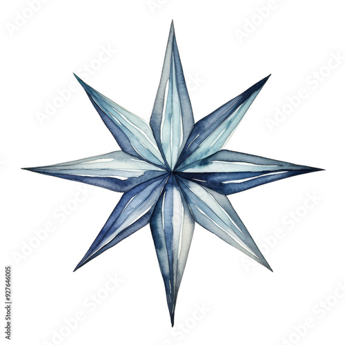 Fototapeta premium Watercolor Illustration of a Nautical Star in Blue Tones.