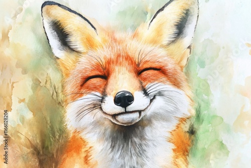 © Fotograf, Obraz premium Watercolor illustration of a red fox in a serene environment
