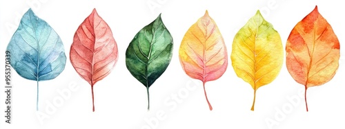 Obraz premium Watercolor illustration of an abstract set featuring colorful leaves
