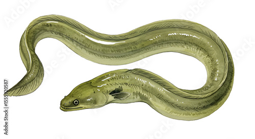 Fototapeta premium Watercolor Illustration of an Eel, Aquatic Animal, Fish, Underwater Life...