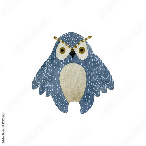 © KiraKonoshenko, Naklejka premium Watercolor illustration of an owl isolated on white background.