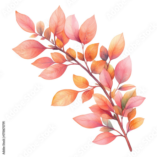 Fototapeta premium Watercolor illustration of autumn leaves on a branch