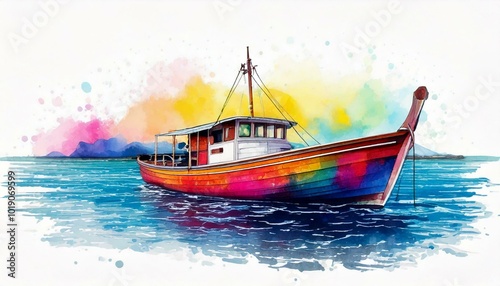 © Jhonatan, Fototapeta premium watercolor illustration of boat in the ocean