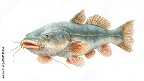 Obraz premium Watercolor Illustration of Catfish on White Background