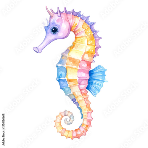 Fototapeta premium Watercolor illustration of colorful Seahorse