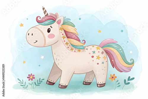 © Adnan, Fototapeta premium watercolor-illustration-of-cute-horse-doll--perfec