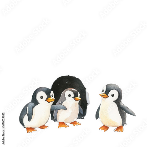 Fototapeta premium Watercolor illustration of cute penguins isolated on transparent background
