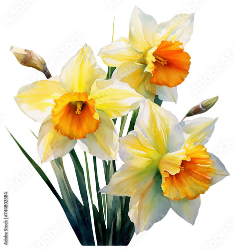 © Bonbonny, Naklejka premium Watercolor illustration of daffodil flowers. Transparent background, png