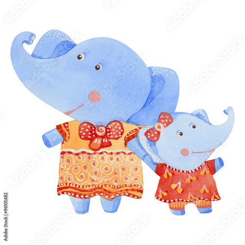 © dvoriankin, Fototapeta premium Watercolor illustration of elephants family