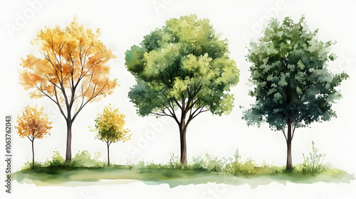 © Siasart Stock, Fototapeta premium Watercolor Illustration of Four Trees