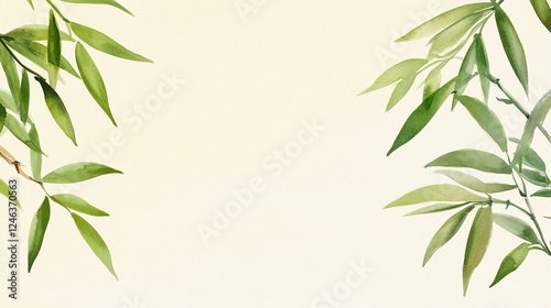 Naklejka premium watercolor illustration of green bamboo leaves