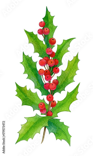 © alhontess, Fototapeta premium Watercolor illustration of holly