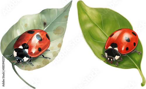 © INHYE GAL, Fototapeta premium watercolor illustration of ladybug on green leaf