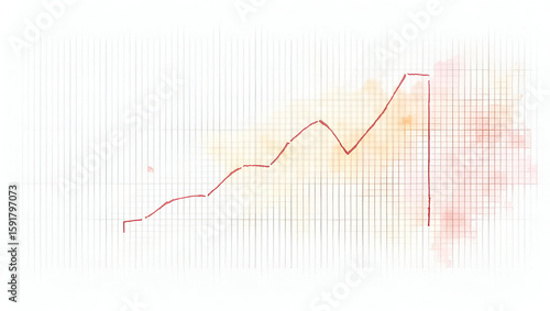 © GG Kenji, Naklejka premium Watercolor Illustration of Mid-Year Review Meeting: Abstract Charts, Sketchy Linework, Soft Pastel Hues, Progress at Half Year, Watercolor Style, Empty Space Left