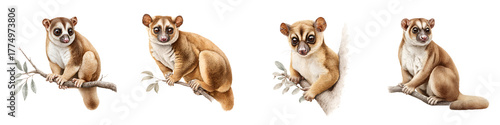 Obraz premium Watercolor Illustration of Mouse Lemur Poses