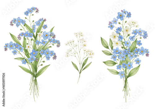Naklejka premium Watercolor illustration of pastel flowers, including roses and hydrangeas,...