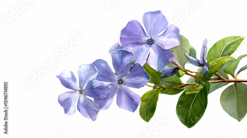 © Tabinda, Fototapeta premium Watercolor Illustration of Periwinkle (Sadabahar) Flowers – Delicate Pink and Purple Blooms with Green Leaves on White Background