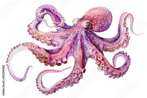 Fototapeta premium Watercolor Illustration of Pink Octopus