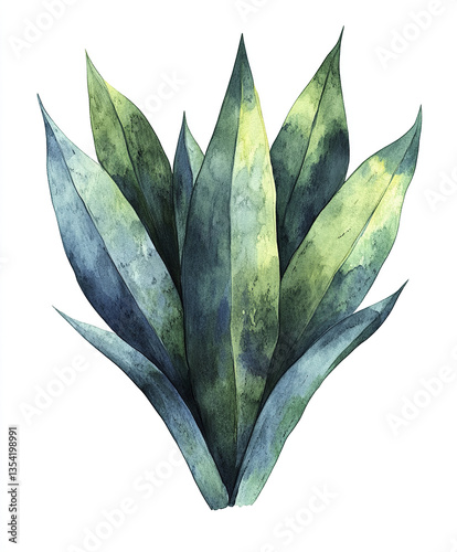 Fototapeta premium Watercolor illustration of Sansevieria plant on white background