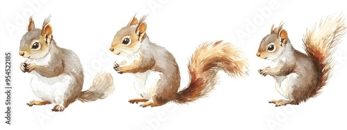 Obraz premium Watercolor illustration of squirrels in a hand drawn style