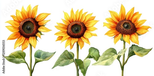 © MKS, Obraz premium Watercolor illustration of sunflowers on a white background