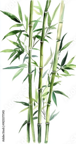 Fototapeta premium Watercolor illustration of three bamboo stalks against a white background