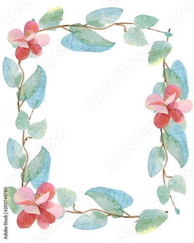 © Любовь Анохина, Naklejka premium watercolor illustration of twigs and flowers in a rectangular frame