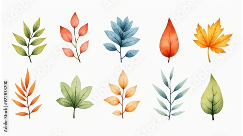 Fototapeta premium Watercolor Illustration of Various Leaves in Autumn Colors - Nature Design