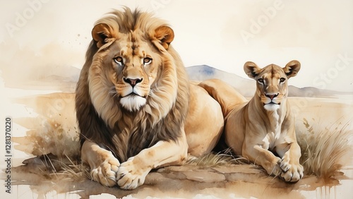 Fototapeta premium "Watercolor Illustrations of the Lion and the Lamb: A Biblical Symbol"