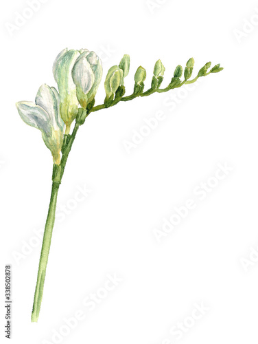 Obraz premium Watercolor image of white freesia flowers