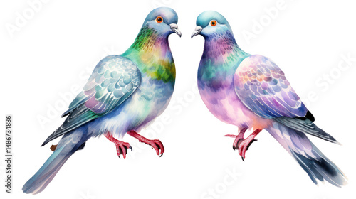 © Al-Mamun, Obraz premium Watercolor Iridescent Pigeon Birds Clipart — Hand-Painted Urban Bird Illustration on Transparent Background