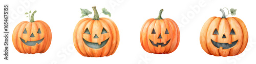 Fototapeta premium Watercolor Jack-o'-Lantern Collection: Cute Halloween Pumpkin Illustrations...