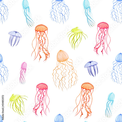 © zenina, Obraz premium Watercolor jellyfish pattern