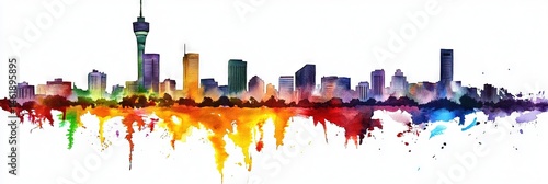 © Brian, Fototapeta premium watercolor johannesburg, south africa downtown skyline
