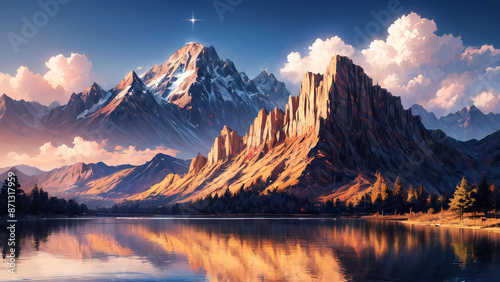 © KimLong07080910, Obraz premium Watercolor Lake Scenery Landscape